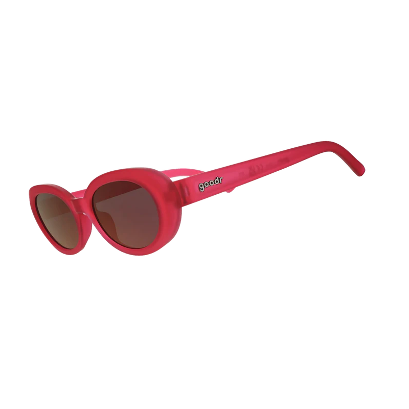Move through space and time in style with hot pink oval sunglasses featuring red lenses. Pair them with your dance moves and shift your reality into a pink-tinted mind-bend. If you feel your soul briefly leave your body during the cha-cha, that’s normal.